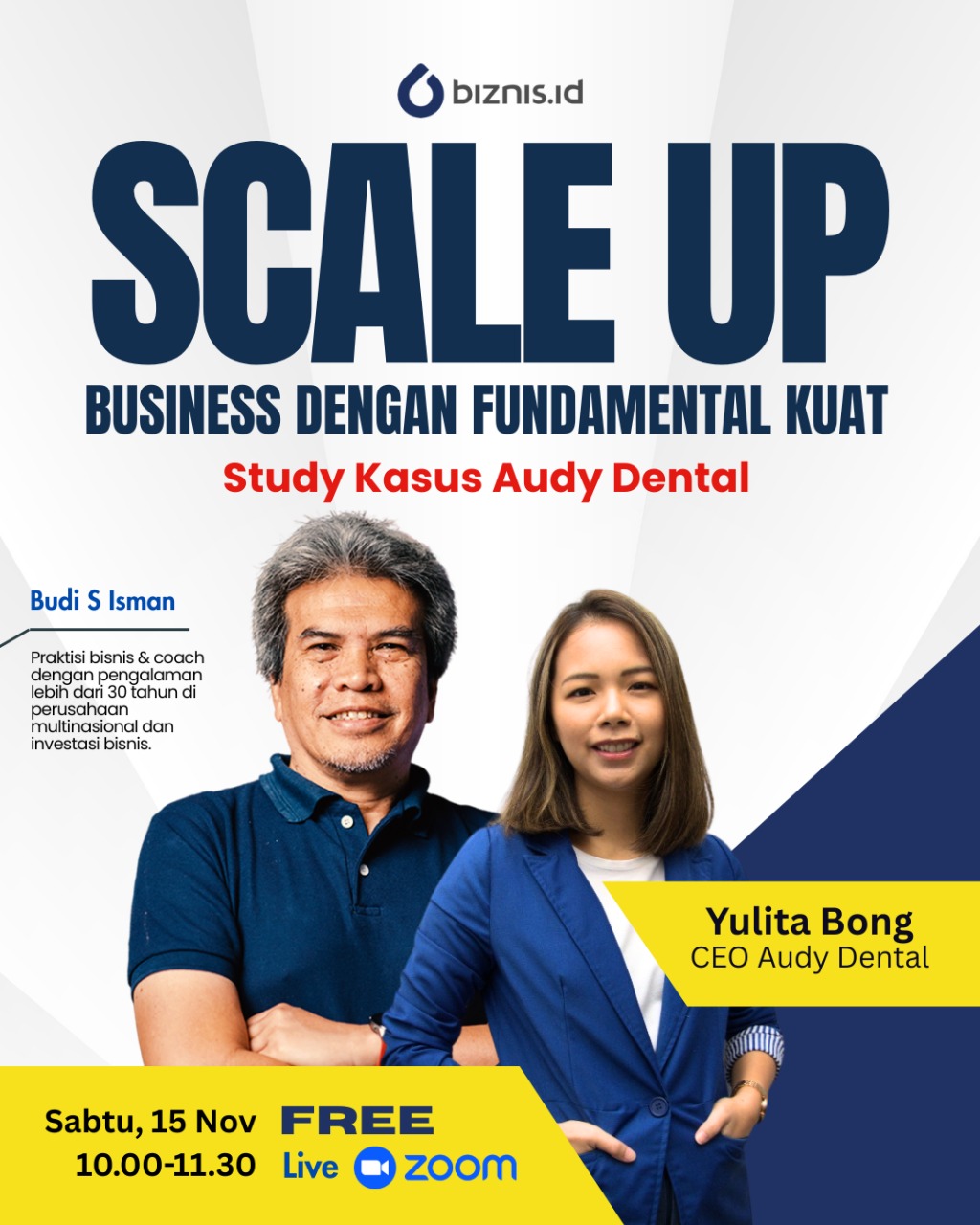 Jangan lewatkan sesi live inspiratif bersama Pak Budi Isman, founder biznis.id dan Bu Yulita Bong, CEO Audy Dental.
